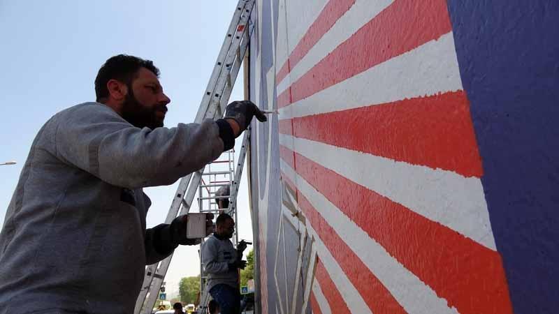 00:45Şi ve Macron, Chengdu kentinde bir araya geldiBursa Büyükşehir Belediyesi Park ve Bahçeler Dairesi Başkanlığı tarafından 'Burası Bursa' temasıyla Osmangazi ilçesinde bulunan Kültürpark'ın kuzey kapısındaki 186 metrelik duvara, şehrin doğal ve tarihi zenginliklerini yansıtan resim çalışması yapılıyor. Yaklaşık 1 ay önce başlanan ve sanatçı Tuba Okat'ın tasarladığı, Atatürk Heykeli, Bursa’nın Tarihi Belediye Binası, Tayyare Kültür Merkezi, Irgandı Köprüsü, İznik Gölü'ndeki Tarihi Bazilika, Baba Sultan Türbesi, Eski Karaağaç, Gölyazı, Cumalıkızık, UNESCO alanları, Karagöz ve Hacivat gibi kentle özdeşleşmiş pek çok değerin yer aldığı resimler, 2'si kadın 4 ressam ve 5 boya ustası tarafından 186 metre uzunluğundaki, 900 metrekarelik duvara çiziliyor.