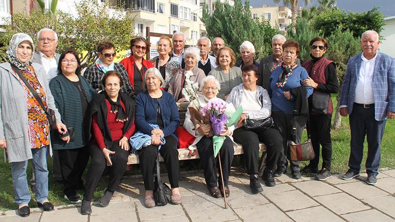 Yıllar sonra öğretmenleri ile bir araya gelen öğrenciler, emekli öğretmen Emel Yılmaz’ın 24 Kasım Öğretmenler Günü'nü kutlayıp, çiçek takdim edip, hatıra fotoğrafı çektirdi.