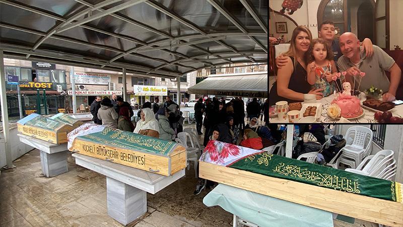 Antakya’da tamamlanan işlemlerin ardından cenazeler, akrabalarının burada olması nedeniyle İzmit’e getirildi. Eren Camisi’nde öğle namazı sonrası kılınan cenaze namazının ardından Okay ailesinin bireyleri İzmit Kent Mezarlığı’nda toprağa verildi.