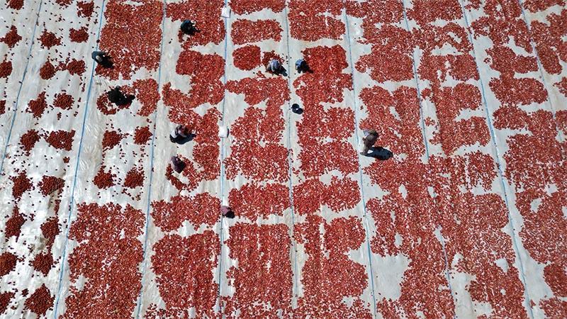 07:29Malatya Memleket Günleri, Maltepe’de kapılarını ziyaretçilerine açtıYeşilhisar ilçesinde yaklaşık 5 bin dekar alanda domates üretimi yapılıyor. İlçede yetişen domatesler, dolgunluğu ve aroması ile özellikle Avrupa'daki pizza üreticileri tarafından ilgi görüyor. İlçede bulunan yaklaşık 500 dönümlük tarlalardaki sergi alanlarına serilmeye başlanan yaklaşık bin 500 ton domates, güneş altında doğal yöntemlerle kurutulduktan sonra ihraç ediliyor.