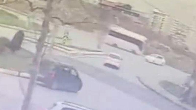 Kaza anı güvenlik kamerasına yansıdı. Görüntülerde servis aracının hızla ilerlediği, karşı yönden gelen bir otomobilin son anda uzaklaştığı ve aracın devrildiği anlar yer aldı.