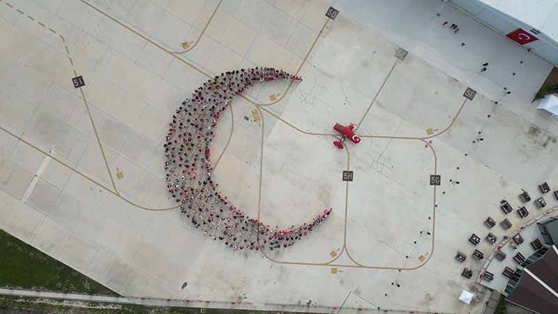 07:29Malatya Memleket Günleri, Maltepe’de kapılarını ziyaretçilerine açtıSivrihisar Havacılık Merkezi, geleneksel hale getirdiği hilal-yıldız koreografisinin 11'incisini, 29 Ekim Cumhuriyet Bayramı etkinliklerine özel olarak hazırladı. Sivrihisar’ın kırsal Yeşilköy Mahallesi'ndeki Necati Artan tesislerine çevre illerden ellerinde Türk bayraklarıyla gelen yüzlerce kişi, hilal şeklini aldı. Türkiye'nin ilk kadın profesyonel akrobasi pilotu olan Semin Öztürk Şener'in 'Yeni Menekşe' isimli akrobasi uçağı da yıldızı oluşturarak koreografiyi tamamladı.