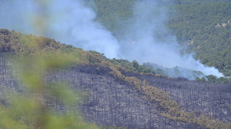 Sabahın erken saatlerinde söndürme çalışmalarına 7 helikopter de yeniden destek vermeye başladı. Tepe noktalardaki alevler söndürülürken, iki noktada yangın devam ediyor.