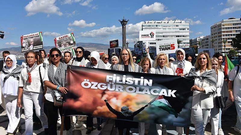 02:40Osmaniye'de 2 kişin öldüğü, 7 kişinin yaralandığı kaza kameradaAK Parti İzmir Kadın Kolları Başkanlığı tarafından, Filistin'de yaşanan İsrail zulmüne ve insanlık dışı soykırıma dikkat çekmek amacıyla Konak Cumhuriyet Meydanı'nda eylem yapıldı. Beyaz kıyafet giyen kadınlar pankartlarla İsrail'e olan tepkilerini dile getirdi. Basın açıklamasına AK Parti İzmir milletvekilleri Ceyda Bölünmez Çankırı ve Şebnem Bursalı da katıldı. AK Parti İzmir İl Kadın Kolları Başkanı Emel Dalkıran, "Kıymetli kadınlar, anneler, gençler ve vicdan sahibi herkes. Duvarlara kanla yazılmış isimler. Bir annenin, bir babanın yitik hayali. Bir çocuğun hiç göremeyeceği bahar. Bir bebeğin hiç yaşayamayacağı çocukluğu. İşte bu acının adı, Gazze. Bugün kadınlar olarak, Gazze'nin sessiz çığlığına ses olmak için el ele verdiğimizi tüm dünyaya göstermek adına meydanlardayız. Bugün 81 ilde kurduğumuz bu zincir, Gazze'de evlatlarını kaybeden anne-babaların zinciridir. Öksüz-yetim bırakılan çocukların zinciridir ve insanlığını kaybetmeyen herkesin zinciridir" dedi.