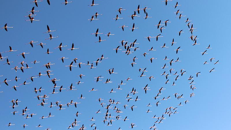 Diğer yandan herkesi flamingoları gözlemlemeye davet eden Tunç, "Artemia salina ile beslenen flamingoların kanatları kırmızı renk, çok daha koyu ve belirgin oluyor. Artemia salina beslenemeyen flamingolar ise kanatları beyaz oluyor. İkisi de aynı türdür. Üreme alanlarında inanılmaz büyük popülasyonlar oluşturuyorlar. Şu anda Niğde Akaya Barajı'ndan Tuz Gölü'ne geliyorlar. Mamasın Barajı'nda, Tuz Gölü'ne geliyorlar. Gökyüzünde inanılmaz bir cümbüş oluşturuyorlar. Gece de bunu izleyebilirsiniz. Sakin bir ortamda kafanızı gökyüzüne çevirmeden seslerini duyabilir ve gözlemleyebilirsiniz. İnanılmaz güzel bir renk cümbüşü. İnsanlar, bir dürbün alıp bu güzellikleri izlesinler" dedi.