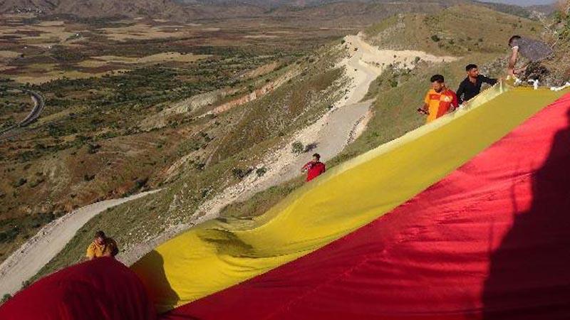 00:52İçinde 40 bin lira olan çanta, belediye kameralarından tespit edilen sahibine teslim edildiSpor Toto Süper Lig'in 2022-23 sezonunu şampiyon olarak tamamlayan Galatasaray'ın bayrağı Batman'ın Gercüş ilçesindeki Bayrak Tepe'ye açıldı. 30 metre uzunluğunda 15 metre genişliğindeki bayrağı ilçede sığdıracak yer bulamadıklarını kaydeden sarı-kırmızılı taraftarlardan Süleyman Öner, "Bu tepeye asmamızın sebebi, gördüğünüz gibi çok büyük olduğu ve dev gibi olduğundan. Bayrağı ilçeye sığdıramadık, mecburi bu tepeye getirdik. Bayrak 30 metre uzunluğunda, 15 metre genişliğinde, yani 450 metrekare. Bayrağı da şu şekilde temin ettik. Sağ olsun ilçedeki Galatasaray taraftarları olarak, para toplayarak bu bayrağı aldık. Buradan hem başkanı hem de futbolcu arkadaşları tebrik ediyorum" dedi.