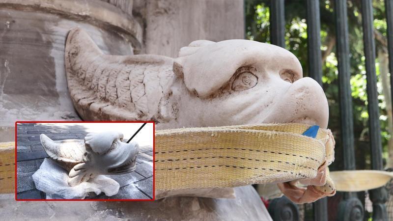 02:36Beykoz'da otomobil kaldırımdaki ağaca çarptı: 2 yaralıGalatasaray Lisesi'nin İstiklal Caddesi'nde bulunan kapısındaki sağ ve sol tarafındaki sütunlarda yer alan ikiz yılan heykellerinden biri yaklaşık 3 ay önce bilinmeyen bir sebeple ortadan kaybolmuştu. Okul yönetimi ve Galatasaray Lisesi Vakfı tarafından kayıp heykelin yerine kopyası yaptırıldı. Mermer malzeme kullanılarak yapılan ve orijinali örnek alınarak hazırlanan yılan heykeli, metal pimler, halat ve yapıştırıcı kimyasalla yerine yerleştirildi. Ağırlığı 110 kilogramı bulan eser, sütuna 45 dakikada monte edildi. Yaklaşık 150 yıllık olduğu tahmin edilen orijinal heykelin akıbeti ise bilinmiyor.