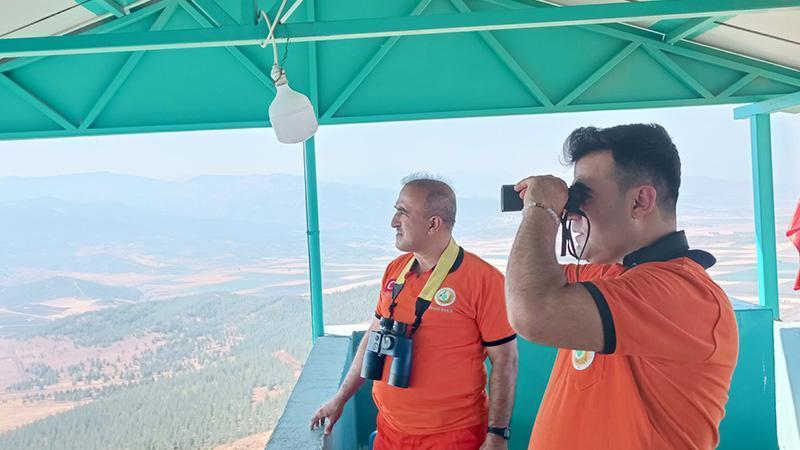 Bölgeye hakim noktadaki kulede görevli Kenan Bakır ise "Kulemizde 32 bin hektarlık alandaki ormanı gözetliyoruz. Burada 24 saat esasıyla özverili şekilde ufukta gözüken bir dumanı anında yakalayabilme mücadelesi veriyoruz. Vatandaş ile teşkilatımız el ele verdiği sürece orman yangınlarını en aza indirebiliriz. Çünkü, yangınların yüzde 90'ı insan kaynaklı" diye konuştu.