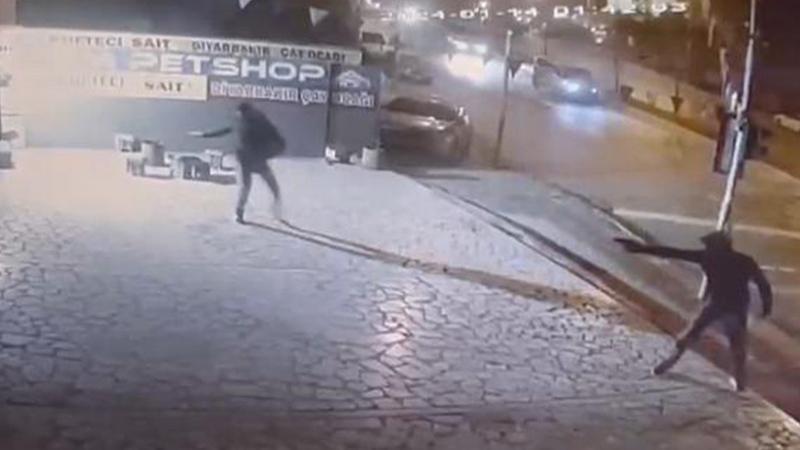 Kaçan saldırganların yakalanması için çalışma başlatılırken, polis ekipleri tarafından olay yerinde yapılan incelemelerde 9 adet kovan bulundu. Saldırı anları ise bir iş yerinin güvenlik kamerasına yansıdı. Görüntülerde, yüzleri cerrahi maske ile kapalı iki kişinin iş yerine yaklaştığı, bir kişinin iş yerinin içine kadar girerek çalışanlara ateş ettiği görülüyor.