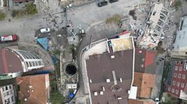 Yıkımın yaşandığı Arslan Apartmanı’nın enkazı ve mühürlenen 12 binanın bulunduğu bölge, dronla görüntülendi. Bölgede bir süredir devam eden metro hattı çalışmasının olduğu görüldü. Metro çalışması nedeniyle açılan kuyu da dron görüntülerine yansıdı. (DHA)