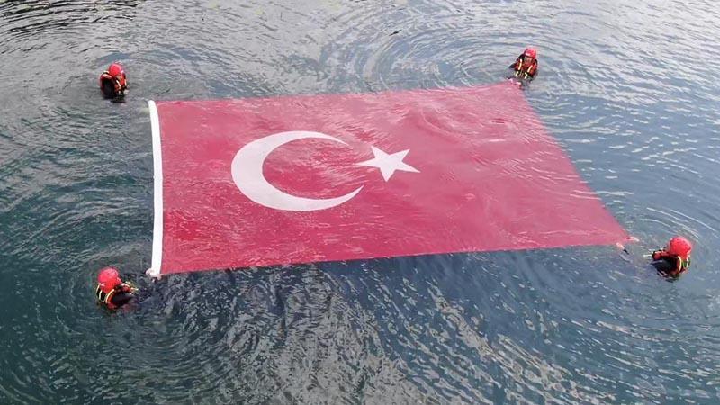 Bolu Jandarma Komutanlığı ekipleri, Jandarma Teşkilatı'nın kuruluşunun 186’ncı yıl dönümünde, Gölcük Tabiat Parkı'ndaki göle girip Türk bayrağı ve 'Jandarmamızın 186’ncı Yılı Kutlu Olsun' yazılı pankart açtı.
