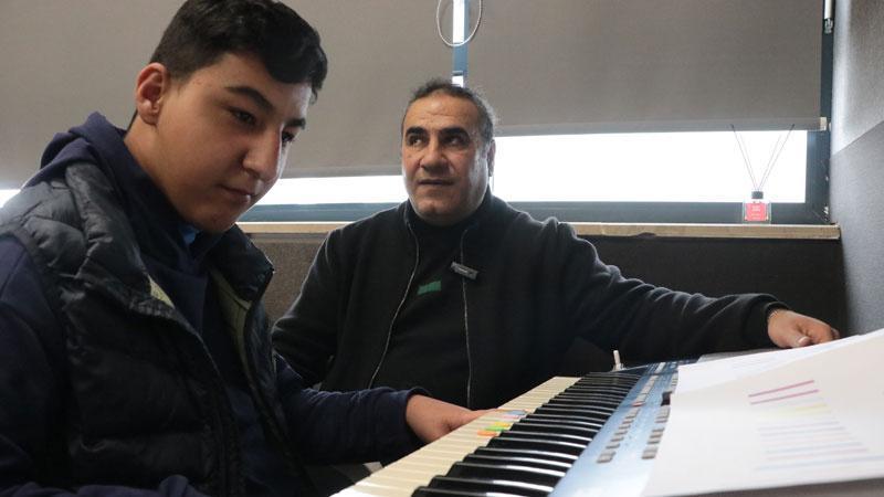Engelli öğrencilerin davranış değişikliğine odaklandıklarını söyleyen Ekici, "Her müzik öğretmeni hazır öğrenci, yetenekli öğrenci ister ki müzikle ilişki kursun. Burada öğrencilerimizin davranış değişikliğine odaklandığımız için müziği de bu odağa yerleştirip müziğin bu odakta etkisi nedir onu çalışıyoruz. Partnerim Talha Hocam ve bir öğrencimizle birlikte çok güzel başarı elde ettik. Yani 100 öğrenciden 5 tanesiyle bile müzikal bir ilişki kurabiliyorsak çok mutlu oluyoruz. Ritim duygusu, estetik duygusu, bu duyguların ifade edilme biçimi ya da bu duyguların ayağa kaldırılması bu öğrencilerde çok zor oluyor. Benim geçmişte aldığım sanat eğitimi, müzik eğitiminin belki çok azını yansıtabiliyoruz. İmkanlarımız biraz kısıtlı ama bütün bunlara rağmen mesele bir şeyi başarmak değil, eğitimle öğrenci-öğretmen ilişkisini kontak bir seviyede kurabilmek. Başarı zaten varsa kendiliğinden gelen bir şey. O yolda, yolun kaynak olarak kendi sunduğu bir şey. Biz kaynağın peşinde değiliz, yoldayız sadece" dedi.