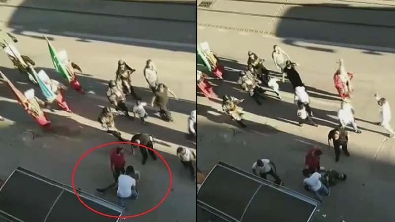 Gösteri yürüyüşü yapan mehteran takımı yanlarından geçerken onlar kavga etti
