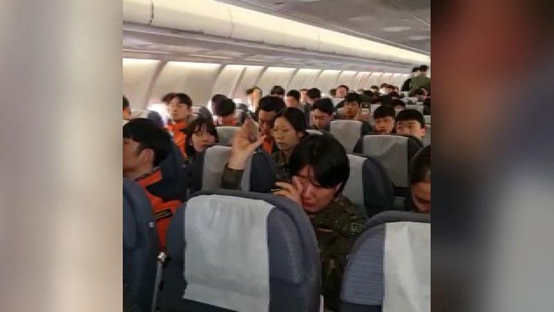 Uçakta mesajı dinleyen Güney Koreli ekip, duygusal anlar yaşayıp gözyaşlarını tutamadı ve mesaja alkışlarla karşılık verdi.