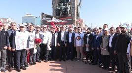 03:01Ağabeyi ve kuzeninin öldüğü kazada yaralanan Hamit, yaşam savaşını yitirdiHak İşçi Sendikaları Konfederasyonu (HAK-İŞ) üyeleri 1 Mayıs Emek ve Dayanışma günü nedeniyle Taksim Meydanı'na geldi. Üyeler, meydandaki Cumhuriyet Anıtı’na çelenk bıraktı. Ardından, HAK-İŞ adına, Öz Taşıma İş Sendikası Genel Başkanvekili Avukat Mehmet Ali Kayabaşı basın açıklaması yaptı.Açıklamaların ardından üyeler, Kazancı Yokuşu’nda 1 Mayıs 1977'de ölenlerin anısına karanfil bıraktı.