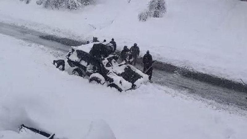01:40Yem yüklü kamyon, buzlanan yolda fındık bahçesine uçtu; kaza kameradaHakkari'de kar yağışı sonrası İl Özel İdaresi'ne bağlı karla mücadele ekipleri, il genelinde kapanan toplam 357 yerleşim yerinin yolunu açmak için çalışma başlattı. Zorlu hava ve arazi koşullarına rağmen ekiplerin çalışmaları aralıksız sürüyor. Öte yandan Hakkari-Çukurca kara yolu üzerinde bulunan Çimenli köyü mevkisinde kar nedeniyle yolda mahsur kalan askeri araç, köylülerin desteğiyle bulunduğu yerden çıkarıldı.