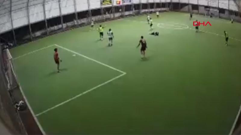 Polis memuru Murat Kına’nın son anlarına ait güvenlik kamerası görüntüleri ortaya çıktı. Görüntülerde, sahada aniden yere yığılan Murat Kına’ya arkadaşlarının koşarak müdahale etmesi yer aldı. (DHA)