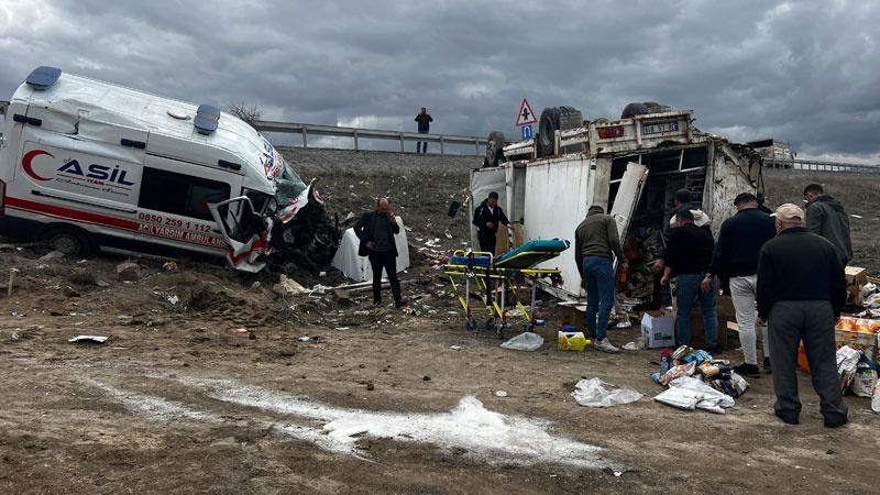 Her iki araç da şarampole devrildi. Ambulanstaki 5 kişi ve kamyonetin sürücüsü yaralandı. Çevredekilerin ihbarıyla bölgeye jandarma, polis ve sağlık ekipleri sevk edildi.
