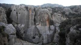 Yunan mitolojisinde adı geçen Cehennem Kayıkçısı Kharon, 4 metreye 1,5 metre olarak kayalara insan portresi olarak kabartılarak yapıldı. Helenistik dönemde İmparator Antiochus IV Epiphanes tarafından M.Ö. 22'nci yüzyılda yaptırılan ve bugüne kadar gelen, kayalara yapılmış dev mask, Antakya'da birçok kişinin ölümüne neden olan veba salgını nedeniyle ve 'Leios' adında kahinin tavsiyesi üzerine yaptırıldı. İlçeyi gören Habib-i Neccar Dağı eteklerine yaptırılan kaya kabartması mask, salgının durmasıyla yarım kaldı. Şiddetli deprem ve artçılara rağmen kayalara yapılan insan maskı sağlam kalırken, çevreden küçük kayaların yola düştüğü görüldü.