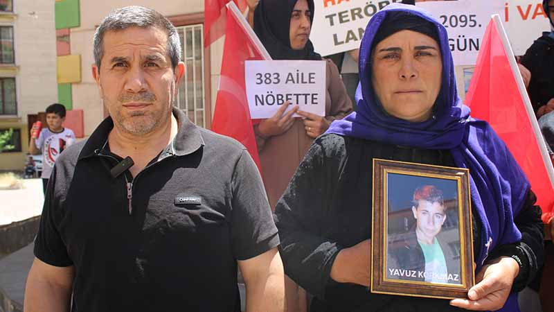 Oğlu Yavuz Korkmaz’ın 2014 yılından bu yana kayıp olduğunu belirten Hüseyin Korkmaz, “Önümüzdeki günler bayramdır, 2 bayramı bir arada yaşamak istiyoruz. Artık dayanacak gücümüz kalmadı. Oğlumuzu istiyoruz. 2014’te İstanbul’da Bağcılar ilçesinde çalışmaya gitmişti. Bir ara kayboldu, o zaman 16 yaşındaydı. O tarihten beri hiçbir haber alamadık. 2016 yılında dağa gittiğini öğrendik. Temas kurmaya çalıştık ama hiçbir şey elde edemedik. Ben Kobani’ye, Kandil’e, Kuzey Irak’a gittim. Hiçbir haber alamadık. Nereye gittiğini bilmiyorduk, biz HDP il başkanlığına geldik, onlarla yaptığımız görüşmede bize dediler ki ‘Oğlunuz dağa gitmiş.’ Artık dayanacak gücümüz yok, annesinin halini görüyorsunuz. Oğlumuzun gelmesini istiyoruz. Yeni süreç inşallah iyi gider, memnunuz. İnşallah bir şeyler olur, herkes evine gelir” dedi.