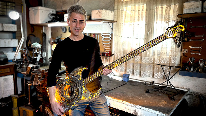 Emrah Korkmaz, pandemi döneminde başladığı hurda metalleri dekoratif objelere dönüştürme hobisi ile aynı zamanda geri dönüşüme katkı sağladığını söyledi. Aynı zamanda kuaför olduğunu belirten Korkmaz, "Erkek kuaförünün daha çok estetiğe önem vermesi gerekiyor. Yaptığım lambalarda da o estetik ruhun yaşaması gerekiyor. Normalde lambalarda kablo görülür; ama ben o kabloları gizleyebileceğim tasarımla çalışıyorum. Benim işim geri dönüşüm. Mesai bitiminde hurdacıları gezerim. Gözüme hoş görünen veya bir şey işleyebileceğim olan metalleri toplarım. Eğer yapacağım lamba küçükse 10-15 parçayla bitirebiliriz. Ama mesela yaptığım gitarda çok fazla parça var" dedi.