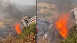 İbrahim Tatlıses'in içinde bulunduğu aracın çarpışmanın etkisiyle alev aldığı görüntüler