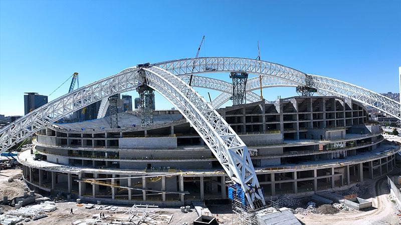 Stadyum inşaatında genel ilerleme seviyesi yüzde 65’e ulaştı. Zemin iyileştirmesi imalatları için yaklaşık 5 bin 500 fore kazık imalatı yapıldı. Betonarme inşaat ve duvar inşası yüzde 90 oranında tamamlandı. Çelik konstrüksiyon imalatında ise yüzde 42 seviyelerine gelindi. Diğer ince imalatlar ise hızla devam ediyor.