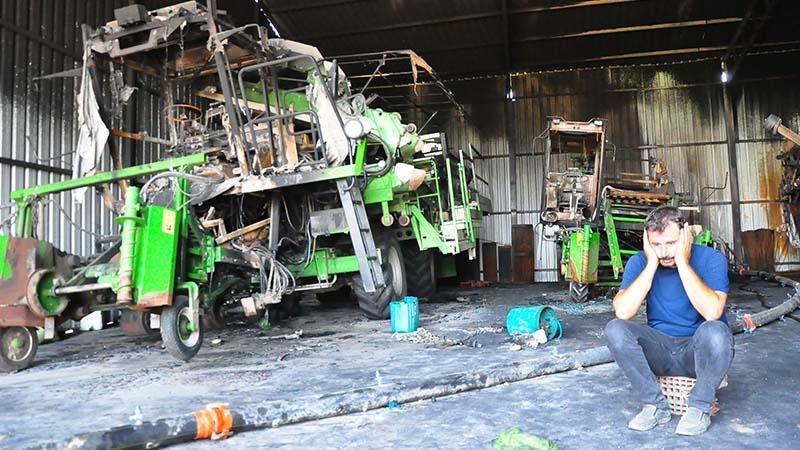 15 gün sonra domates hasadının başlayacağını söyleyen Selvi, büyük bir zarara uğradığını belirtip, gözyaşlarını tutamadı. Selvi, “2010 yılından beri çiftçilik yapıyorum. 2020 yılında domates toplama makineleri aldım. Hem kendi ürünümü hem de çevremdeki çiftçilerin mahsulünü topluyordum. İlk çıkan yangını kısa sürede söndürdük. İkinci yangında önce bir patlama sesi duyulmuş ardından çıkan yangında depo alev topuna dönmüş. Tüm makineler yandı. İtfaiye söndürdü ama artık çok geçti. 50 milyon TL zararım var. Makinelerin ikisi sigortasız, ikisi kaskolu. Maddi zarar karşılanır ama rızkıma yapılan bu saldırı çok ağır. Bir insan bu kadar gaddar olamaz. Bana zarar ver ama rızkıma neden göz koydun? Şüpheli ya da şüphelilerin bulunmasını istiyorum" diye konuştu. (DHA)