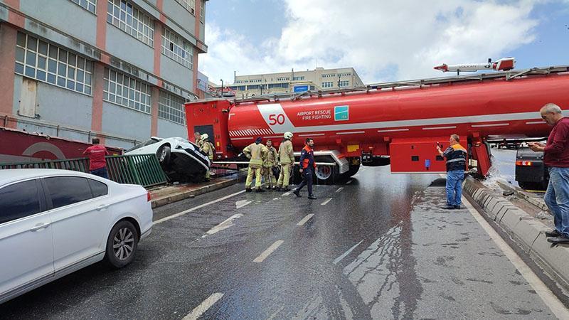 03:01Ağabeyi ve kuzeninin öldüğü kazada yaralanan Hamit, yaşam savaşını yitirdiİkitelli Organize Sanayi Bölgesi'nde birçok işletmenin bulunduğu 6 katlı binadaki devam eden yangına müdahale için İstanbul Havalimanı'ndan gelen itfaiyenin su tankeri Reşat Nuri Güntekin caddesinde geri geri kaydı. Park halindeki bir otomobile de çarpan tanker yan durarak yolu kapattı. Tankerin çarptığı otomobil bir işyerinin bahçesinde park halindeki kamyonetin üzerine düştü. Kaza nedeniyle yol trafiğe kapandı. Tankeri bulunduğu yerden kaldırmak için çalışmalar devam ediyor.