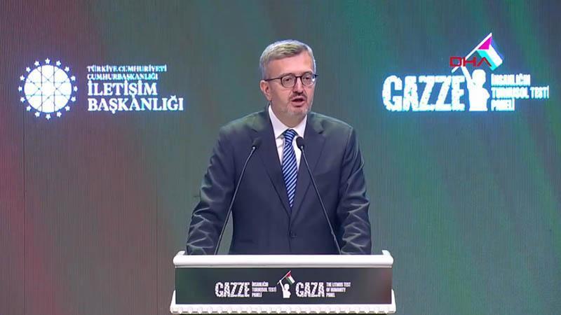 İletişim Başkanı Burhanettin Duran, Başkanlık Konferans Salonu'nda düzenlenen 'Gazze: İnsanlığın Turnusol Testi' panelinde konuştu. Duran, İsrail'in Yemen, Lübnan, Suriye, Tunus ve İran'ın ardından geçen hafta Katar'a da saldırarak müzakere için Doha'da bulunan Hamas heyetini hedef aldığını belirtti. Uluslararası toplumu harekete geçmeye çağıran Duran, "Dünyanın artık bir İsrail sorunu vardır; uluslararası hukukun üzerinde hoyratça tepinen, düzenden değil kaostan beslenen, bölgemizdeki kaosun, düzensizliğin, istikrarsızlığın bizatihi kaynağı haline dönüşen yıkıcı bir rejime dönüşmüştür İsrail" dedi.