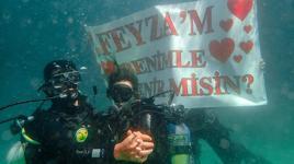 01:42Samsun’da Süper Loto talihlisi 105 milyon TL’lik büyük ikramiyeyi kazandıBir giyim mağazasında yönetici olan Kenan Esen, 2 yıldır birlikte olduğu Feyza Ünal’la evlilik kararı aldı. Teklifin sıra dışı olmasını isteyen Esen, su altındaki evlilik teklifi için hazırlıklara başladı. Bir dalış kulübüyle anlaşan Esen, Feyza Ünal’ı, dalış yapmak için Çınarcık ilçesi Koruköy beldesine götürdü. Çift dalgıç kıyafetlerini giyerek dalış yaparken, hayatlarının en unutulmaz anını da su altında yaşadı. Ünal’ın su altındayken, arkasındaki dalgıçlar tarafından açılan ‘Feyza’m benimle evlenir misin?’ pankartını gördüğü anda yaşadığı şaşkınlık su altı kamerasına yansıdı. Feyza Ünal’ın ‘Evet’ yanıtının ardından çift, dünyaevine girmek için ilk adımı atıp nişanlandı.