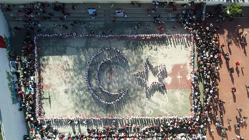 04:21Yol vermediği gerekçesiyle ceza kesilen taksi şoförü: Yayalar da dikkat etmiyorİlçe Milli Eğitim Müdürlüğü ve Raşit Efendi İlkokulu iş birliğinde çocuklara bayrak sevgisini aşılamak amacıyla etkinlik düzenlendi. Okul bahçesinde bir araya gelen öğrenciler, kırmızı-beyaz kıyafetler giyerek ve ellerinde Türk bayrakları sallayarak, bedenleriyle ay yıldız oluşturdu. Okul bahçesindeki gösteriyi izleyenler de alkışlarla öğrencilere destek verdi. Öğrenciler, hazırladıkları koreografiyle milli birlik ve beraberlik mesajı verdi. Ay yıldızlı koreografi, dronla görüntülendi. Gösterinin ardından İstiklal Marşı okundu. Okul Müdürü Bülent Erkul, etkinlikle öğrencilerde milli bilinç ve vatan sevgisini pekiştirmeyi amaçladıklarını söyledi. (DHA)