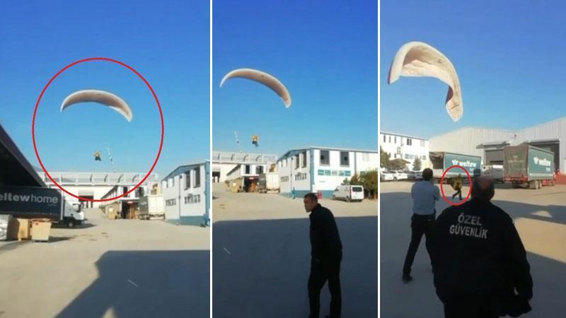 01:39İstanbul'da aynı gün işlenen iki farklı cinayete ilişkin 15 şüpheli yakalandıOlay, cumartesi günü İnegöl ilçesinde meydana geldi. Mobilya fabrikasında çalışan işçi Adem Keskin, yamaç paraşütü yapmak için Uludağ'a çıktı. 2 bin 200 metre yükseklikteki uçuş alanından paraşütle havalanan Keskin, mesaiye geç kalacağını anlayınca dönüşe kısa zaman kala fabrikanın bahçesine indi. Bu sırada molada olan mesai arkadaşları, fabrikanın üzerinde paraşütüyle uçanın Keskin olduğunu anladı ve cep telefonu kamerasıyla video çekti. Keskin'in çalıştığı fabrikaya paraşütle gelişi, güvenlik kamerasına da anbean yansıdı.