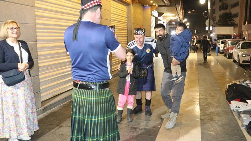Antalya'dan eşi ve arkadaşlarıyla Güneydoğu turuna gelen Sezgin Tetik, İskoçyalı taraftarlarla fotoğraf çektirdiğini söyledi. Tetik, "Arkadaşlarımızla dışarıya dolaşmaya çıktık. Tesadüfen İskoçlara denk geldik. Fotoğraf çektirdik. Çok ateşli taraftarlar. Türkiye'ye başarılar diliyoruz. Diyarbakır gerçekten doğunun Paris'i, çok beğendik" ifadelerini kullandı.