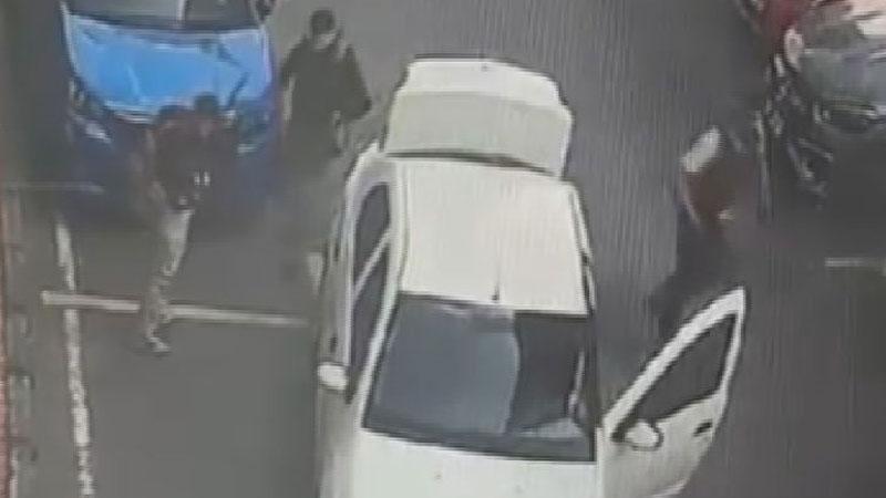 Çevredeki bir iş yerinin güvenlik kamerasına yansıyan görüntülerde, şüphelilerin saldırı öncesi beyaz otomobil ile olay yerine geldikleri ve hazırlık yaptıkları anlar yer aldı.
