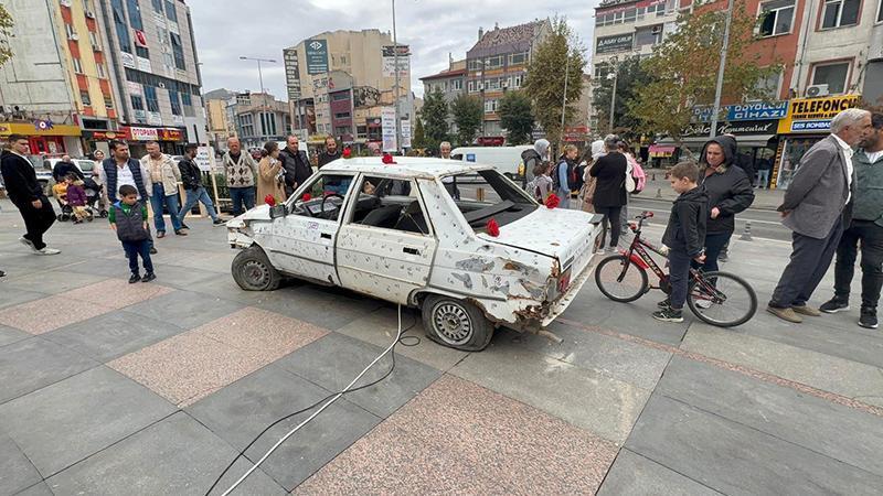 04:06Tartıştığı büfe çalışanını boğazından bıçaklayan sanığa 9 yıl 7 ay hapisCumhuriyet Meydanı'nda Filistin İnsiyatifi tarafından Gazze'de yaşanan insanlık dramının anlatıldığı fotoğraf sergisi açıldı. Sergide, Gazze'de 2024 yılının Şubat ayında İsrail güçleri tarafından kurşunlarla hedef alınan araçta ailesinden 5 kişiyle mahsur kalıp, daha sonra cansız bedenine ulaşılan Hind Receb de anıldı. Hind Receb'in hayatını kaybettiği, İsrail askerleri tarafından 355 kurşun sıkılan otomobilin yeniden oluşturulan temsili modeli de alanda sergilendi. Filistin'de yaşanan saldırıların boyutunu anlatmak amacıyla oluşturulan sergide; Gazze'deki yıkım, çocukların yaşadığı zorluklar ve sivil kayıpları konu alan fotoğraflar yer aldı. Vatandaşlar, sergiyi gezerek Gazze'deki dramı bir kez daha yakından hissetti. Sergi, gün boyunca vatandaşlar tarafından ziyaret edildi. Sergi aynı zamanda duygusal anlara neden oldu. (DHA)