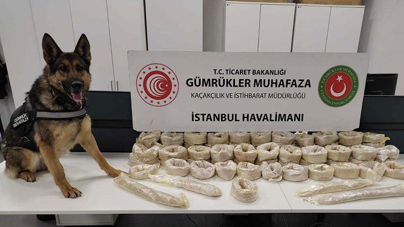 04:06Tartıştığı büfe çalışanını boğazından bıçaklayan sanığa 9 yıl 7 ay hapisİstanbul Havalimanı Gümrük Muhafaza Kaçakçılık ve İstihbarat Müdürlüğü ekipleri tarafından yapılan risk analizi neticesinde Avustralya, Suudi Arabistan ve Kanada'ya gönderilen 3 kargo gönderisi şüpheli olarak belirlendi. Kargolar dedektör köpekler tarafından kontrol edildi. Avustralya'ya gönderilmek istenen halıya dedektör köpeklerin yoğun tepki vermeleri üzerine paket açılarak halının bir yüzünün kaplanmış gibi olduğu görüldü ve uyuşturucunun halıya emdirilmiş olabileceği düşünülerek halıdan alınan örnek uyuşturucu test kitiyle analiz edildiğinde uyuşturucu madde sonucu olduğu tespit edildi. Şüpheli görülen diğer kargo gönderisi ise içerisinde kıyafet olduğu beyan edilen ve Kanada'ya gönderilmek istenen paketi riskli olarak kabul etti. Yapılan arama sonucunda dedektör köpeklerden alınan yoğun tepki üzerine içerisinde kazak, mont, pantolon gibi kıyafetlerin astarına dikilmiş vaziyette kumaş parçaları bulundu. Kumaştan alınan parçanın uyuşturucu test kiti analizinde uyuşturucu madde olduğu anlaşıldı.