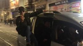 00:58Sancaktepe'de 16 yaşındaki şüphelinin iş yeri kurşunladığı anlar kameradaOlay dün saat 04.30 sıralarında Beyoğlu'nun işlek yerlerinden biri olan İstiklal Caddesi'nde yaşandı. Araç trafiğine kapalı caddede hafif ticari araçla ilerleyen trafik magandaları, müziğin sesini sonuna kadar açarak yayaların arasından ilerledi. Kapısı açık alan araçtan dışarı sarkan bir kişi ise tehlikeli hareketler yaparak şov yapmaya devam etti. Trafik magandalarının bu tehlikeli şovuna İstiklal Caddesi'nde görev yapan sivil polis ekipleri "Dur" dedi. Caddede görevli Güven Timleri otomobili durdurarak, içindeki 5 kişiyi üst araması ve Genel Bilgi Toplama (GBT) sorgusundan geçirdi. Sivil ekiplerin haber vermesi üzerine gelen trafik polisi, trafiğe kapalı alanda araç kullanmak, yüksek sesli müzik yayını yapmak ve tehlikeli sürüş maddelerinden cezai işlem uyguladı. Otomobil ve içindeki kişiler daha sonra İstiklal Caddesi'nden çıkarıldı.