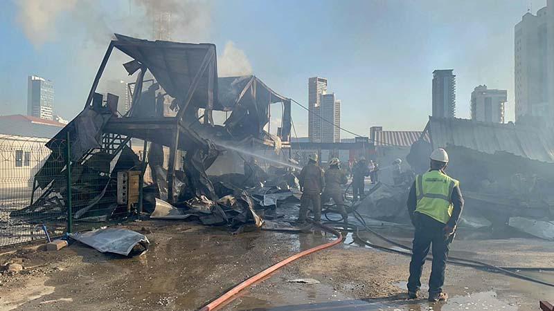 İzmir'in Bayraklı ilçesinde bir inşaat şantiyesinde çıkan ve itfaiye ekiplerinin müdahalesi ile kontrol altına alınan yangınla ilgili soğutma çalışması sürüyor. Yangın sırasında şantiyede bulunan işçilerden Kadir Alan (53), "Yangının elektrik kontağından çıktığını düşünüyoruz. Şantiye alanında çalışırken yükselen dumanları gördük. Alevler bir anda yayıldı. Yapacak bir şeyimiz yoktu. Koşup geldik ama şantiyedeki 12 konteyner tamamen yandı" dedi. İşçilerden Engin Yaman (52) ise yangının çok hızlı bir şekilde yayıldığını ve 10 dakika içerisinde eşyalarının tümünün yandığını söyledi. Soruşturma sürüyor.