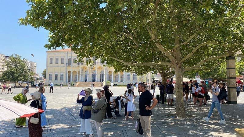 04:06Tartıştığı büfe çalışanını boğazından bıçaklayan sanığa 9 yıl 7 ay hapisMeteoroloji Genel Müdürlüğü, mevsim normalleri üzerinde seyreden hava sıcaklıklarının 19 Temmuz Cumartesi gününden başlayarak artacağı ve ülke genelinde mevsim normallerinin 5 ila 8 derece üzerine çıkacağının tahmin edildiğini duyurdu. İzmir'de de hava sıcaklıkları yer yer 40 derecenin üzerine çıktı. Dün en yüksek sıcaklık Tire'de 43,8 dereceyle ölçülürken, merkez ilçelerde 40,9 dereceyle en sıcak ilçe Buca oldu. Sıcaklıklar bugün de devam ederken, şehrin işlek noktalarından olan Konak Saat Kulesi'nin bulunduğu Atatürk Meydanı da kalabalık ciddi oranda azaldı. Meydana gelen vatandaşların birçoğu güneşten korunmak için ağaçların altına ve gölge yerlere sığındı. Sıcaklık havanın 25 Temmuz'a kadar devam edeceği bildirildi. (DHA)