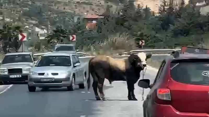 01:00Nefes borusuna mandalina kaçan öğrenciyi Heimlich manevrasıyla kurtardıKuruyer Mahallesi'nde sahibinin elinden kaçan kurbanlık boğa, araç trafiğinin yoğun olduğu Antakya-Altınözü kara yoluna çıktı. Boğayı fark eden vatandaşlar araçlarını durdurdu. Sahipleri boğayı yakalamak için uzun uğraşlar verdi ancak başarılı olamadı. Boğa yol kenarındaki ağaçlığa girerek gözden kayboldu. O anlar çevredeki vatandaşlar tarafından cep telefonuyla görüntülendi. (DHA)