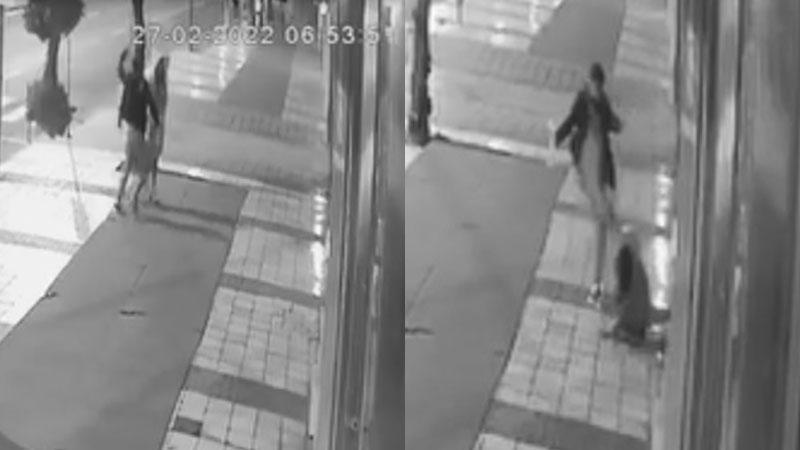 Bu arada olay anı, bir iş yerinin güvenlik kamerasına yansıdı. Görüntülerde kadın ile saldırganın bir süre tartıştıkları, sonra da şüphelinin kadına yumruk ve tekmelerle saldırdığı görüldü. Yine görüntülerde iş yerinden çıkan Samet Mermer ile saldırganın tartıştığı, daha sonra Yasin Dönmez'in de dükkandan çıkması ile saldırganın kaçtığı yer aldı. Darbedilen kadının da kurtarıldıktan sonra olay yerinden ayrıldığı görüntülere yansıdı.