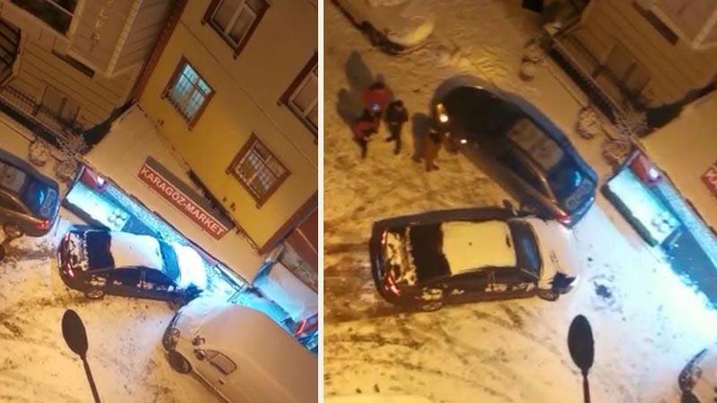 03:56Avcılar'da 3 çocuk veterinere torpil attı; içerideki hayvanların kaçıştığı anlar kameradaKaza, Seyrantepe Mahallesi'nde pazar akşam saatlerinde meydana geldi. Edinilen bilgiye göre, etkili olan kar yağışı nedeniyle buzlanan yokuştan inerken aracının direksiyon hakimiyetini kaybeden sürücü, park halindeki iki otomobile çarptı. Ardından da dükkanın önünde zorlukla durabildi. O anları ise çevredekiler, cep telefonu kamerası ile kaydetti.