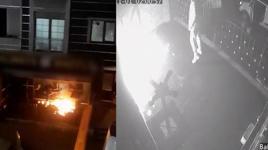 Olayın ardından aracına binen Engin T. olay yerinden uzaklaştı. Yaklaşık yarım saat sonra dükkan önüne yeniden gelen Engin T., aracından inerek dükkanın girişine 3 kez yanıcı madde attı. Engin T. ardından alevlere teslim olan dükkanın giriş kapısını tekmeledi. Halıların alev aldığını ve alevlerin dükkana ulaştığını gören çevredeki vatandaşlar kovalarla su dökerek yangını söndürdü. Olay anı güvenlik kamerasına saniye saniye yansıdı. Olayın ardından aracına binen Engin T. hızla kaçmaya başladı.