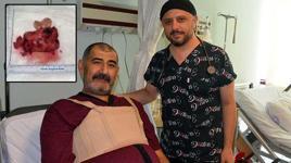 05:08Fatih’te iş yerinden çalınan 200 kiloluk çelik kasa, Başakşehir'de bulunduNefes darlığı şikayetiyle Kahramanmaraş Sütçü İmam Üniversitesi Sağlık Uygulama ve Araştırma Hastanesi Kardiyoloji bölümüne başvuran Aziz Karabörk, Öğretim Üyesi Doç. Dr. Mehmet Kirişci tarafından muayene edildi. Hastanın muayenesi ve tetkiklerinde Karabörk’ün çocukken geçirdiği ateşli hastalığı bağlı olarak kalp kapağının çürüdüğü ve kalbinde de kitle olduğu tespit edildi. Bunun üzerine Karabörk ameliyata alındı. Kalp kapağı açıldığında Aziz Karabörk’ün kalbinin içindeki kitlenin tahminlerden daha büyük olduğu ortaya çıktı. Ameliyatı yapan Mehmet Kirişci ve ekibinin de şaşırdığı kitlenin alınması ve kalp kapağının değiştirilmesi 7 saat sürdü. Ameliyat sonunda Karabörk’ün kalbinden 10 santimetre büyüklüğünde ve 250 gram ağırlığında kitle çıkarıldı.Aziz Karabörk’ün çocukken geçirdiği ateşli hastalığın kalbinde ritim bozukluğuna neden olduğunu belirten Doç. Dr. Mehmet Kirişci, bunun sonucunda da kalp içerisinde pıhtı oluşmaya başladığını söyledi. Pıhtının zamanın da fark edilmediği taktirde büyüyüp kitle haline geldiğini kaydeden Kirişci, şöyle devam etti:“Bu hastamızda da bu büyüme esnasında bu kopan pıhtılar beynine ya da vücuduna herhangi bir organa ataraktan ciddi bir ölüm de dahil olmak üzere, felç de olmak üzere birtakım ciddi problemler oluşturabilir. Şimdi bu hastamız tedavi süreci içerisinde pıhtının ileri derecede büyümesine yaklaşık 10 santimetreye ulaşmasına kadar tedavi içerisine alınmamış. Bu ilerleme süreci içerisindeki pıhtılar kopup da felç gibi, ölüm gibi tablolar oluşturabilecekken oluşturmadan mucizevi bir şekilde yaklaşık 10 santimetreye ulaşana kadar fark edilmeden büyümüş. Bu aşamada bu pıhtılar oradan kopup atmış olsaydı şayet ölüm tablosu oluşabilirdi Dolayısıyla biz bu hastamızın tanısını koyduk ve ameliyata aldık. Ameliyatta romatizmal olarak oluşan kalp kapağı taşlaşmış şekildeydi. Onu çıkarttık ve açtığımızdaki en önemli şey kalbin içerisindeki sol tarafında tamamen içini dolduran ve parçalı bir şekilde oluşmuş totalin de 10 santime ulaşan 250 grama ulaşan bir ağırlıkta bir pıhtı oluştuğunu gördük. Bu kalbin içerisinde bu aşamaya kadar gelmiş olması ve hayatta kalmış olması bu hasta için mucizevi bir olay. Pıhtıları çıkarırken kalbin içerisine yeni bir zar oluşturduğunu gördük. Hani bu olayın büyüme aşamasına kadar ne kadar geç kalındığının göstergelerinden birisi. Hem oluşan bu pıhtı zarını aynı zamanda da pıhtıların hepsini tamamen çıkarttık ve temizledik.”