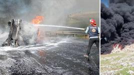 Tankerdeki yangın itfaiye ekiplerinin çalışması sonucu söndürülürken, yol yapılan çalışmanın ardından trafiğe açıldı.