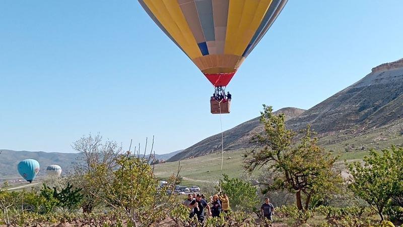 Nevşehir Valiliği, Avanos ilçesinde turistlerin bulunduğu sıcak hava balonunun kayalıklara sıkıştığı olaya ilişkin açıklamada yaptı. Açıklamada, "Bugün saat 05.00’te ilimiz Çavuşin bölgesinden havalanan bir sıcak hava balonu, uçuş süresinin dolması nedeniyle saat 06.00 sularında Zelve Ören Yeri yakınlarında bir yamaca zorunlu iniş gerçekleştirmiştir. Balon, hava koşulları ve uçuş süreci dikkate alınarak pilotun inisiyatifi ile kontrollü bir şekilde iniş yapmıştır. Söz konusu olayda herhangi bir yaralanma meydana gelmemiştir. Olayın ardından balonda bulunan yolcularımız AFAD ekiplerimizin hızlı müdahalesi ile sağlıklı bir şekilde tahliye edilmiştir. Konuyla ilgili gerekli idari inceleme başlatılmıştır” denildi.