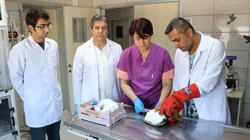 Araç ezmesi sonucu yaralanan kaplumbağanın 6 gün önce tedaviye getirildiğini anlatan Prof. Dr. İsmail Aytekin, "Kaplumbağanın üst kabuk kısmının yaklaşık 3'te 2'ye yakını araba tarafından ezilmiş ve kabuğun koptuğunu gözlemledik. Pansumanını yapıp, temizledikten sonra kapatmak için diş hekimlerinin kullandığı akrilikle kapattık. Alçı vaziyeti gören kaplamayla tedavi ediyoruz. Sağlığı, yemesi içmesi çok iyi" diye konuştu.