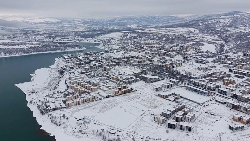 Gece saatlerinde ise baraj gölü çevresindeki sokaklar ve konutlardan yansıyan ışıklar, karın beyazlığıyla bütünleşerek farklı bir atmosfer oluşturdu. Kentte oluşan sessizlik ve ışıkların kar üzerindeki yansımaları, izleyenlere güzel bir manzara sundu. Kar yağışının etkili olduğu kentte gece ve gündüz ortaya çıkan manzara dron ile görüntülendi. (DHA)
