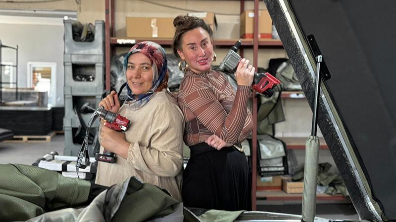 Çalışanlarının kadın ağırlıklı olduğunu belirten Cankurt, "Sanayi bölgesi olduğu için çalışmak istemediler. İlk zamanlar servis şoförlerini de kadın tercih ettim. Bu zorlu bir süreçti. İnsanların ayağını buraya alıştırdım. Daha sonra buraya gelen müşteri portföyü de aile olduğu için bütün kadınlar benimle beraber tüm atölyelerde ve sanayide çalışmaya başladı. Bize hizmet veren; 2 dikiş atölyesi, 2 boya, 2 fiber atölyesi olmak üzere 6 atölyemiz var. Mümkün mertebe önce kadınlara iş vermeye çalışıyorum. Sosyal medyanın ve televizyonun da gücüyle bana ulaşanlar oldu, ünlü olanlar oldu. Mağdur olanlar ve depremzede olanlar oldu. Hepsine mümkün mertebe dokunmaya çalıştık. Bizimle beraber farklı atölyelerde 150, dönemsel olarak da 220 kadar kadın çalışıyor. Yüzde 80 ihracat yapıyoruz, yüzde 80 de kadın ekip arkadaşları çalıştırıyoruz. Yüzde 100 yerli olacak şekilde, yılda 50-60 karavan, 2 bin 500 civarında araç üstü çadır üretiyoruz. Ülkemizin yanı sıra, Orta Doğu'dan Avrupa'ya kadar birçok ülkede varız" diye konuştu.